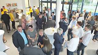 ![]() | ... einem Sektempfang im Foyer des Bürogebäudes. |